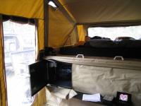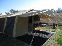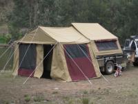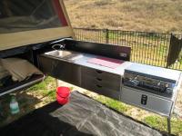 My Southern Cross camper trailer (Bush Mate) .It was a ex demo and got it last july. It came with the following 9ft Tent Kids room Safari roof Full annex with walls Slide out stainless steel kitchen 80L water tank Large tool box 2 x Jerry can holders 9kg Gas bottle and plumbed to rear of trailer with quick release coupling Treg coupling LED brake and clearance lights 12V system with 110 amp battery Electric brakes Hand brake