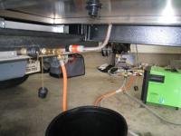 Yes you can and I did but you need to switch it on and off. Also put a bypass in pas the pump with a valve so if the pump stops you can still pull water threw the hand pump. Thats what the two valves are for in the photo. As you can see my pump is in the side hatch of the trailer. Here is a pic of the under side.