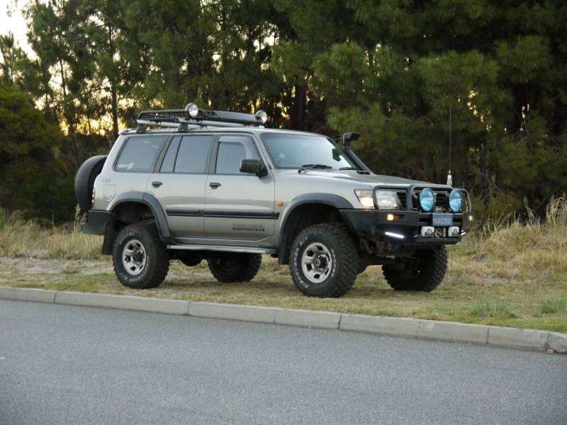 16. Hi all on the other site and I like the smaller sites do here I am . This is the troll it's only a 2.8 but it does have most of the bells and whistles so it can go most places and I like to do all the work myself being a mechanic The troll has arb lockers front and rear sitting on 285/75/16 copper st 4 inch lift that consists of kings spring and raw shocks which I'm changing out for some remote res I think it has a genuine steel bull bar with a 12000lb winch fitted that I have a remote control kit to fit led running lights in the bar with two sets of spottiies lightforce 240 and just some small spread beams half roof rack with 35w hid spots on the rear it sports a twin spare carrier with led work light inside it has roof console with UHF and DVD screen has a DVD player etc in the dash with egt boost and gearbox temp gauges in the wagon area you will find a half built draw system (no photos of this) that has a arb fridge and five draws and a kitchen with a third battery in the back in the front end the motor has a chip and 2.5 exhaust system and snorkel Thats really about all I used to make big brake upgrades for patrol but for the time bein the std setup is working fine so that will stay