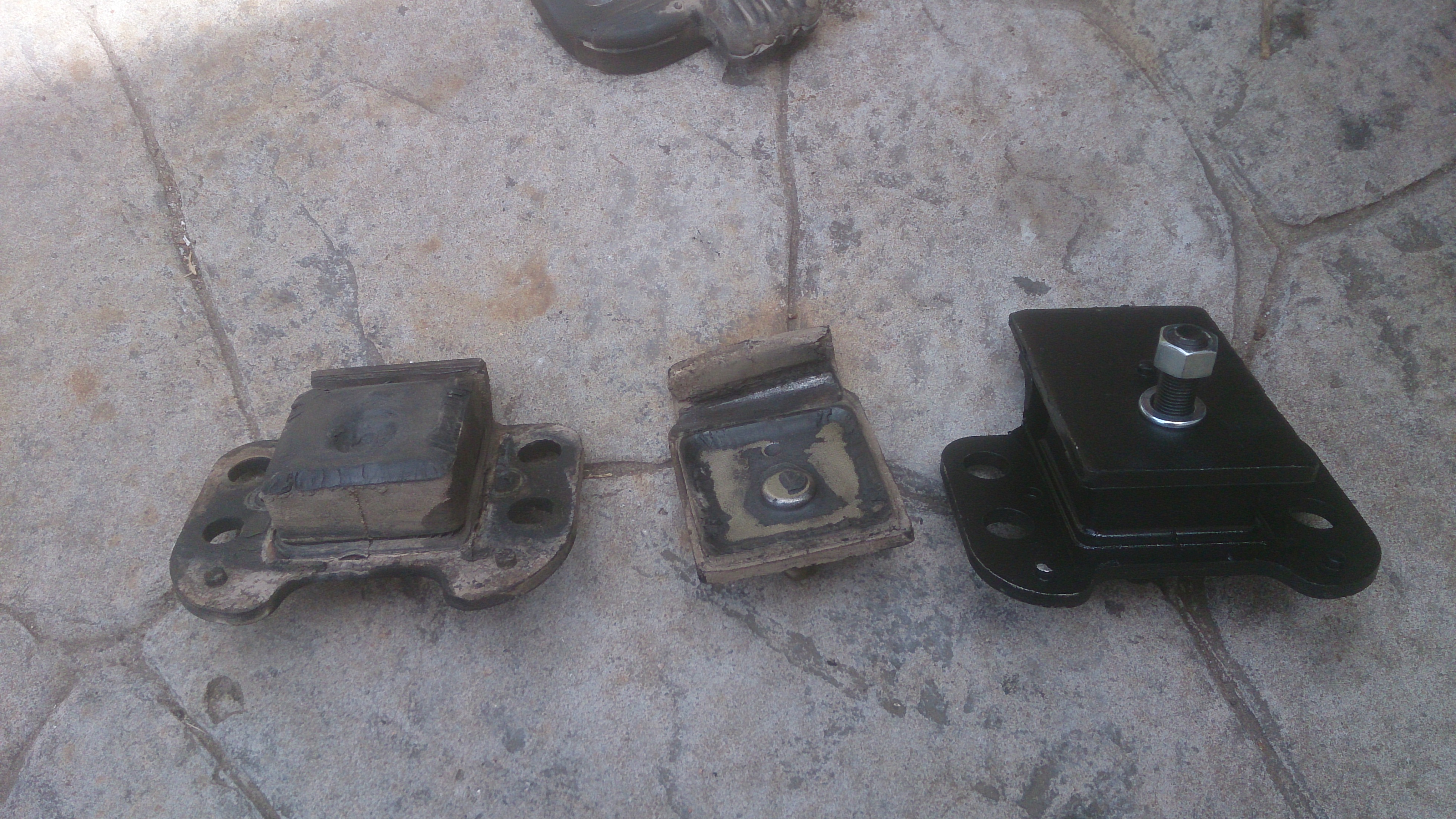So 2 days from Christmas and the engine mounts shat themselves. Lol. A few days prior to doing the job I sprayed all the bolts in penetrene. So being an NA td42 the passenger side was quite easy. All from above the guard. I used a socket an wrench for all the bolts, then the 2 bottom bolts into the mount needed the wobble end. Drivers side is more difficult but I did all mine from under the car. Used a socket and wrench for all but 2 bolts again. The 2 bottom block bolts need a spanner. All bolts require a 17mm socket or spanner. Was happy about that. First up I removed the main battery and sub battery if fitted. This gives you a much bigger work area and visibility. I undid the chassis mount first. Jacked the engine with a piece of 130x35 timber about 300 long. It sat on the sump flange between the harmonic balancer, sump edge and drag link like a bug in a rug. So once chassis bolts were out I lifted the engine until there was a bit of gap between mount and chassis. Now undo the block bolts. You'll notice the drivers side one has an extra price in it. I guess it's extra strength due to the Mount being lower to clear the pump. Anyway remove the 2 across bolts and remove the spacer piece from the mount. Then you can remove the block bolts easy. All from underneath. So once out replace the mounts and then install in reverse steps. Block bolts first and tighten, then the spacer and tighten.. Then chassis bolts while still in the air. Slowly lower the engine down and then tighten. Anyway. I found my issue lol. The one was the passenger side. And yes they are supposed to be one piece lol... And the second one looks like it was about to go. Was moving enough to rub anyway so yea. Was time. Anyway. Enjoy
