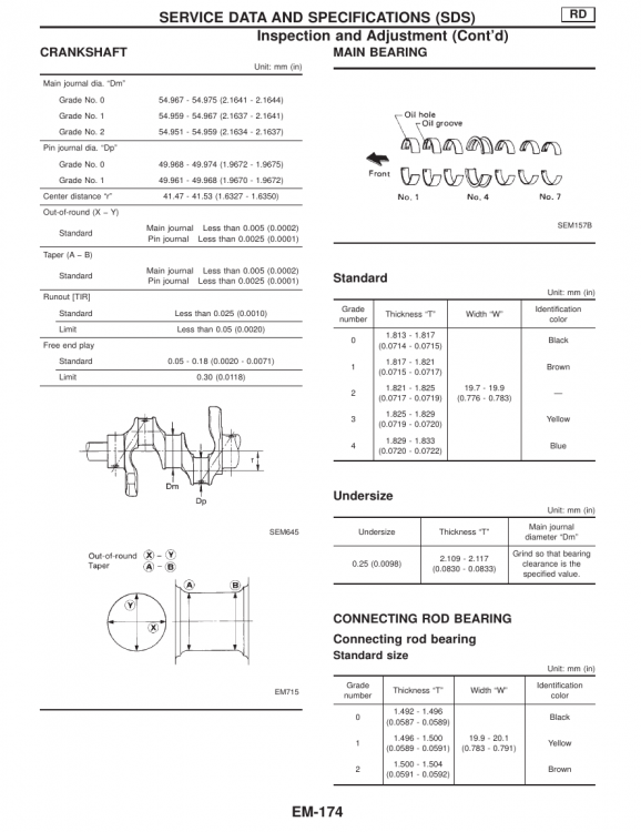 Main Bearings for Nissan Patrol 1998 GU RD28ETI