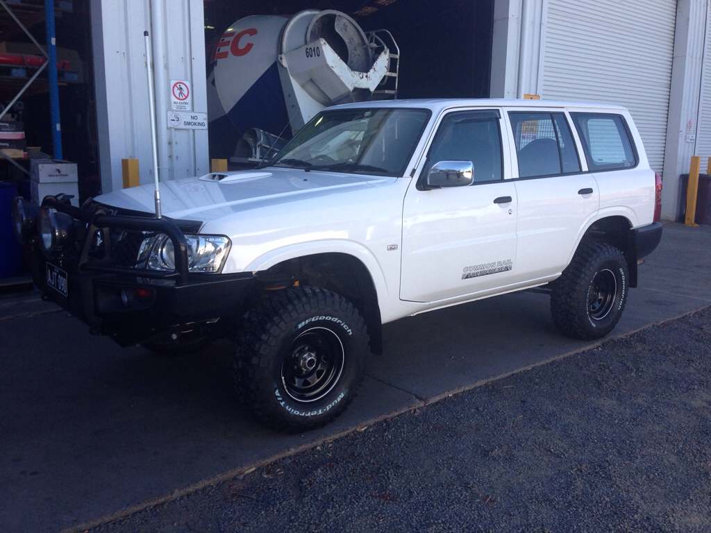 Hey guys. Here is my newest addition that I have been building up since I got it about 2 months ago. It's a 2009 GU DX ex Telstra bought it with 118,000kms stock as a rock. I plan on building it into a capable tourer with the likes of Fraser Island on the cards for next year and cape York to come I needed something reliable. Mods so far: Powerful 4x4 Bullbar 3" lift 285/75/16 BF KM2 on 16x8 rims Roof top tent cage Awning TJM roof top tent not yet fitted Plenty more mods to come when funds allow :-) post-1323-138424030299_thumb.jpg post-1323-138424033391_thumb.jpg post-1323-138424035349_thumb.jpg post-1323-138424036971_thumb.jpg post-1323-138424038597_thumb.jpg post-1323-138424040109_thumb.jpg post-1323-138424041488_thumb.jpg post-1323-138424042579_thumb.jpg post-1323-138424043778_thumb.jpg